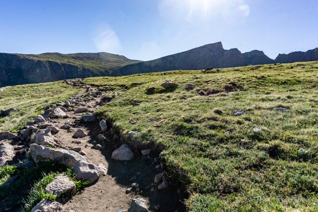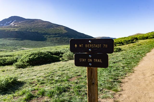 We took a ride on the Gunnella Pass Road to Mt. Bierdstadt trailhead this morning (leaving camp at 5:30 AM or so) and found this hike elevation profile at the trailhead.