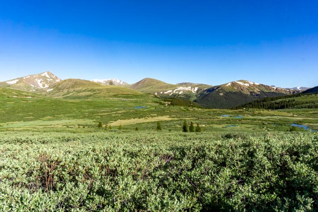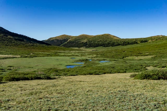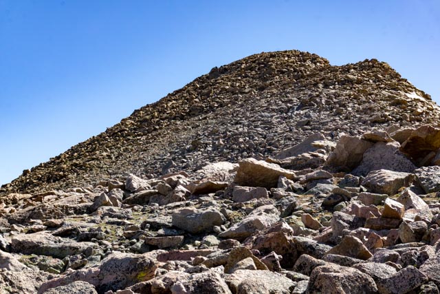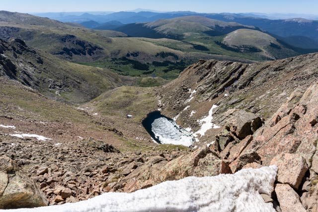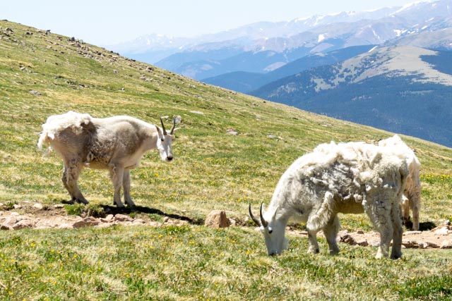 This marker directed hikers to the trail.Initially the trail crosses several marsh areas so these walkways were built to protect the fragile undergrowth.This is an unnamed pond located trailside on the way up the mountain.About a mile into the hike we had to cross this stream. There was no bridge so we had to use rocks which were wet and unstable. Some hikers got very wet crossing here. The air temperature at the trailhead was 37 degrees and the wind was furious. It was pretty cold and I actually wore a jacket the entire hike.Here is look back at the valley I had just climbed through. The entire hike was above tree-line! The trailhead, trail and parked cars have disappeared into the distance. The glacier-caused lakes were a stunning shade of blue.I took another look back at the valley I had climbed through. I wound my way through the brush on a well marked trail, remembering to always take the uphill fork.This is a look forward at the trail going uphill, steeply. We were about two miles from the summit at this point. The mountain is to the right of this photo, with the “Sawtooth” is at the extreme right.Due to the cold temperatures, the trail had frozen and wherever there was a water source, it was frozen. Most of the hikers went off trail to avoid the ice and never regained the trail. I later found out the trail had entered a rock field here and there is no “trail”.It looked easy-peezy from the trailhead but looks were certainly deceiving. The last mile was very difficult, at least for me. There was about a half-mile of scrambling and bouldering over jagged rocks just to reach the base. Once we reached the base, the fun began. This is the trail (or lack of). It was everyone for him/herself and bouldering was the name of the game. Sometimes you would jump rocks only to find there was no outlet and had to backtrack. I wound up going up near the snow line (visible in the upper left of the boulder field). It took me over an hour to ascend the last half-mile to the summit.I ascended the boulder field mostly along the line on snow seen in this photo. If you actually got into the snow, you would slide hundreds of feet to a jagged rock pile at the bottom of the canyon. I took a different route back down the mountain!This is a small pond that is located at the backside base of Mt. Bierdstadt. It is just coming out of the winter freeze. I located the U.S. Geological Survey Marker and photographed it. A couple saw me taking the photo and the young lady insisted that her boyfriend take a similar photo. I took a couple of pictures of them with their phone and they took this photo of me.This guy joined me for lunch on top of the mountain. He came running as soon as I opened a bag of jerky.On the way down the mountain we came across five mountain goats (three in the photo).It must be me because one always tends to single me out for a stare-down.Luckily, a couple of hikers were coming up the trail and the goats’ attention was diverted. I quickly made my way around them, giving them plenty of room.Sorry for the political rant. The government, in their wisdom has closed the only road to Mt. Evans, conveniently after the general store which sells souvenirs amongst other things. They are receiving NO revenue from the tourists in the prime tourist season while channeling the hikers and climbers to Mt. Bierstadt, which is actually joined with Evans by a wall called the Sawtooth. The Sawtooth is a Class 3 endeavor and there are very few who will attempt it.This mileage sign is located in the roadway just past the closure gates. The government has now made a Mt. Evans climb a 23.4 mile hike. IF they would open the road to Summit lake, they could both collect revenue for the summer AND allow climbers or hikers the opportunity to scale 14,000+ ft Mt Evans with a 5.4 mile hike (RT) from the Summit Lake trailhead. I guess I don’t understand the reasoning unless it is designed to punish someone.On the way home from our climb we happened upon this fire on the interstate. It closed all lanes and the emergency equipment had not arrived as this photo was taken. Eventually three fire and rescue trucks. It was comical how the people in the cars acted, including the Audi in front of us trying to block the shoulder as fire equipment was arriving.