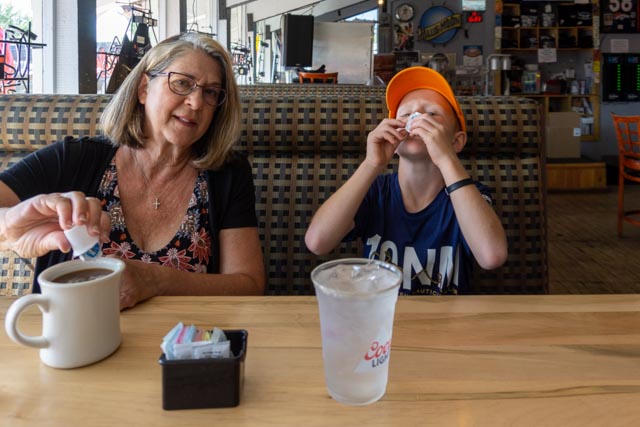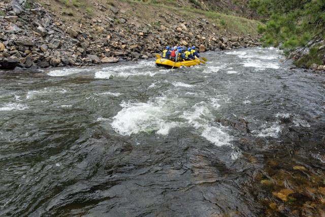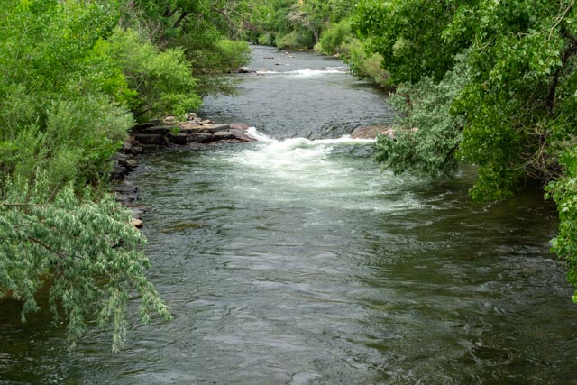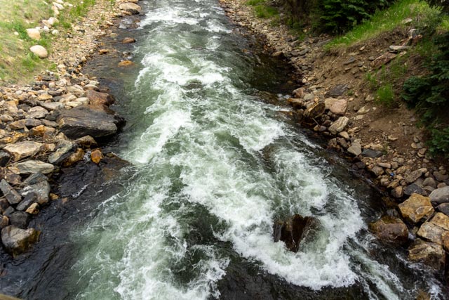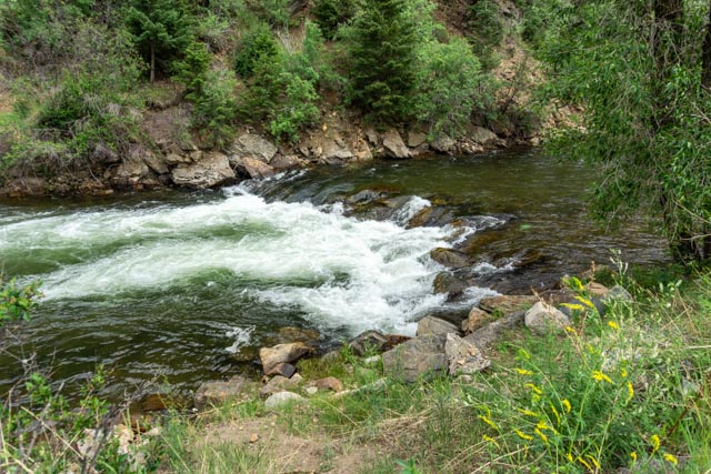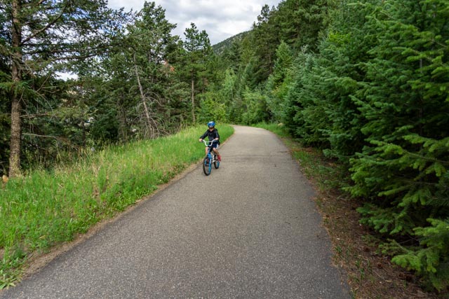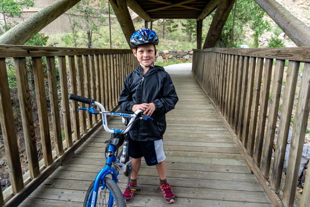 We went to the “biker bar” across the street this morning for breakfast (Friday, July 3rd). It came highly recommended from the locals and we took a chance. Jason was concerned he was going to have to put his hat on backwards to look like a biker!It was early and the action had not started yet. This place is jumping in the afternoon and evening.Jason really liked the drag car positioned near the stage.He even liked the motorcycle better!We were glad that Jason did not accidentally bump any of the bikes and knock the whole group over! We are going to put chairs outside on the 4th to listen to their live music. They have four different live groups performing. We expect the place to be jam-packed. They have a couple of acres of parking so we know the group will get very large.After breakfast and a quick trip to the flagship REI store in Denver to pick up a part for my hydration pack, we headed for a short trip to Idaho City. Unfortunately, it was rush hour on an interstate that was heading out of town for the holiday weekend. A real trifecta! It took us an hour and a half to travel the 12 miles to Idaho City. We did see a lone BLM protester alongside the road. There is a plethora of biking paths in the area and the Scott Lancaster Peaks to Plains trail in Idaho City looked about a flat as they come. We started off downtown and quickly traveled to the Clear River to capture this view.Jason enjoyed the downhill runs but for every downhill there was a corresponding uphill.After making several attempts at trail finding, a white water rafting worker approached us and gave us directions to the trail. It seems that there was construction in the area and the trail was rerouted. We had to backtrack a couple of times, once from an interstate on-ramp! A little cross-country carrying our bikes was also needed. We finally found the rest of the trail and rode to this bike bridge over the river. The trail ended temporarily at the bridge so again, we had to turn around.The view of the river from the bridge was lovely.We rode around a mountain then rejoined the trail, looking across at the interstate and the tunnels that routed traffic though the rock.There were several rafting companies providing the fun on the water and we watched several groups pass by.At the turn around, we again saw the same groups and watched them pass by.Heading back on the bike pathway the scenery was dense trees and brush. We were glad there is little bear activity in the area!This is what a knucklehead looks like when he takes his truck down the bike path. Just to the other side of the truck are large barriers to prevent motorized vehicles from traveling this section. He “tried” to turn around (instead of backing up) and was totally stuck. The embankment drops vertically just to the front of the truck. We passed a local sheriff heading to him on the way back into town. Haha. We biked a little over ten miles with elevations ranging between 7,200 ft and 7,800 feet.