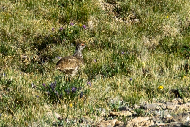 Once I parked the truck (there was plenty of room as I was the only one there), I proceeded up the mountain. I picked out this white-tailed ptarmigan in the grass.