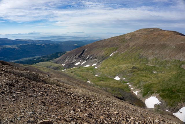 This is the top of the scree field I climbed to reach the top of Lincoln. Snow covered what was a trail and forced me to go the Class Two route.