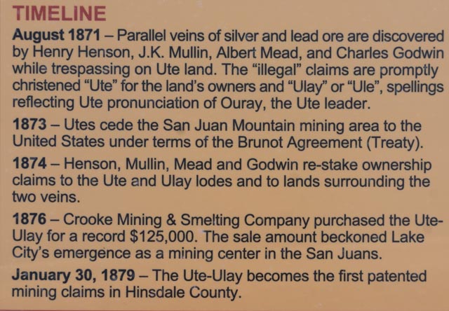 After lunch we headed up to Engineer Pass, another OHV specific road. We stopped at the Ute-Ulay mine to take a minute to explore. The entire site is open but you are requested to stay out of the buildings. There is a lot of restoration work going on in this area. (Trespassing) Prospector Henry Henson filed the original claim for this mine in 1871 but could not take possession until the government “appropriated” the land from its owners, the Utes. Yes, the Crook brothers (real name) bought the holding for $125,000 in 1876 but sold the properties in 1880 for $1.2 million, a pretty good ROA! Henry became a state senator and later a judge. We did return to drive up the canyon to see the remains of the townsite several days later.