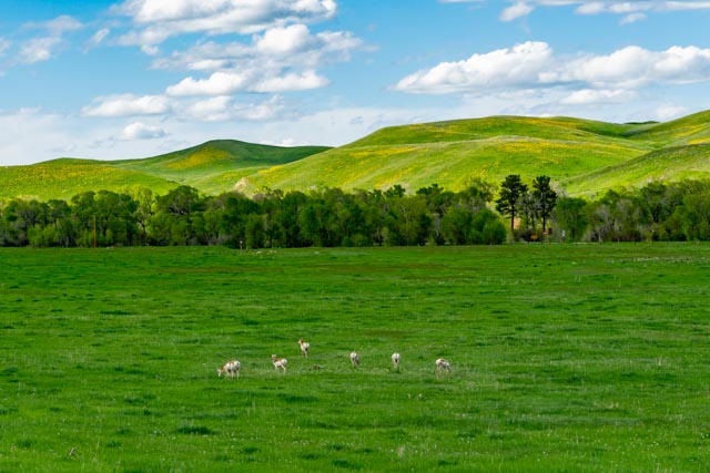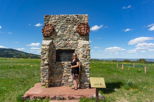 “We stopped at the site of the “Battle of the Tongue River” near Story, Wyoming. On this site, the military, under General Patrick Conner, using a three pronged attack, attempted to kill every male native over twelve years of age. Two of the three columns suffered severely from the natives, running out of rations and losing many of their horses. The commander’s column managed to destroy one Arapaho village and established a fort on the Powder River, later known as Fort Reno. We found this neat little park on a long dirt road, called the “Kleenburn” recreation area. Sometimes we drive these roads to see what they lead to. In this case we found a nice picnic area around this lake which was the original site of a coal deposit. The 2009 reclamation project returned the area to a better condition that it was originally! Yes, the lake was loaded with bass and trout!In the afternoon, we drove to the site of Fort Phil Kearny. This fort was built as a guise/distraction for the natives. While they were watching this fort being built, the railroad was being laid nearby that would lead to their ultimate removal. The fort was much larger than we anticipated and we walked the entire perimeter. The fort cemetery is the white rectangle on the hill in the background. The livery stables were in the forested depression to the right of this photo. The hill behind the cemetery was the signal hill, where lookouts and signals were sent, via flags, about the surrounding conditions. These pronghorns were grazing in the fields directly across the dirt road from the fort. I kinda scared them when I started walking in their direction.This is the trail leading to the Peno Valley. Captain Fetterman led his 80 men into an ambush set by the Ogala Sioux under Red Cloud. Fetterman had previously bragged that he could “kill a dozen of the savages himself” and with 80 men he could take on the whole Sioux/Cheyenne nation. He lasted just minutes once the trap was sprung. Among the warriors were a young Crazy Horse, Dull Knife and Black Shield. Not one of the soldiers survived.The monument to Captain Fetterman and his troopers.We then continued on to the site of the “Wagon Box” fight where Red Cloud’s warriors attacked woodcutters dispatched from nearby Fort Phil Kearny. Luckily the woodcutters had pre-placed fourteen wagon boxes in a ring for defensive purposes when they overnighted outside the protection of the fort. The cutters, unlike the doomed Fetterman group, with the aid of their new, improved breech loading Springfield rifles were able to eventually ward off the natives.This is a monument to John (Portugee) Phillips who rode 236 miles through raging blizzards, through snow four to five feet deep, to Laramie to summon re-enforcements for Fort Phil Kearny. For safety, he travelled only under cover of nightfall and made the trip in four days. In the folklore of the western frontier, his ride was considered equal to that of Paul Revere.