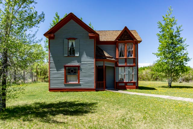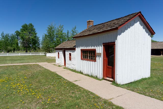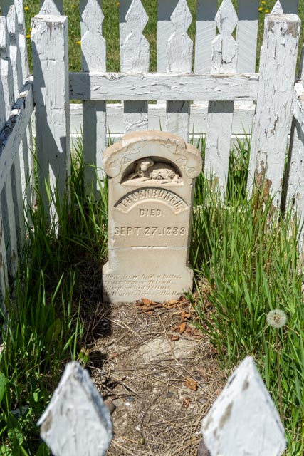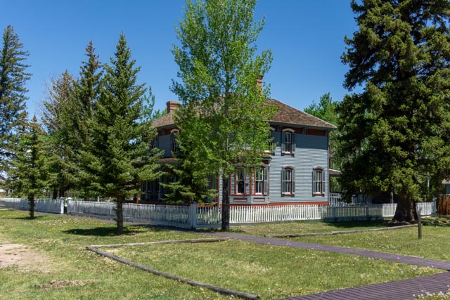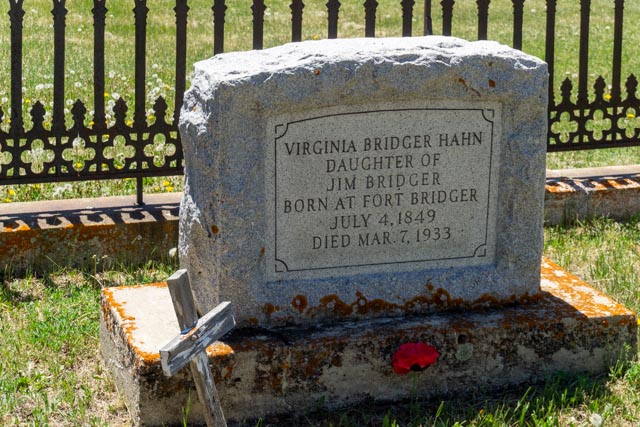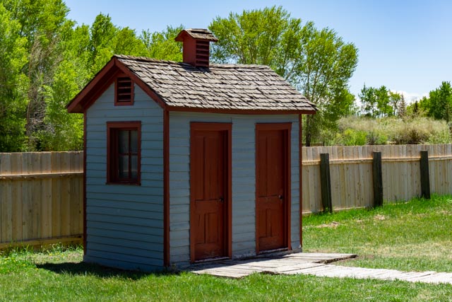 We talked with some state employees repairing animal fencing along the roadway and got a little more information about the site. One of the repairmen was a pilot and scouted the area extensively in his small airplane, locating dozens of pioneer cabins and sites from the air in a region that is fairly roadless. I did manage to get an insulator from him and we came home with a piece of wood (possibly a remnant of an original cabin) that was dovetailed and had square nails protruding. I found it downstream in the nearby creek that led to the site of the Rendezvous.Our next stop was Fort Bridger, near Urie, WY. Fort Bridger was established by Jim Bridger and Louis Vasquez in 1843 as an emigrant supply stop along the Oregon Trail. The Mormons bought it from Louis Vasquez in the 1850s (in Bridger’s absence and without his consent) and it became a military outpost in 1858.This is the first schoolhouse in Wyoming. It was originally built for just one family but was expanded as needed..This is the gravesite of Thornburgh, the dog of major T.T. Thornburgh who was killed in a battle with the Ute Indians on September 29, 1879. The dog was the sole survivor of a wagon train that was burned during the battle. He became the devoted companion of freighter “Buck” Buchanan and died as a result of a kick by one of Buchanan’s mules. A fort favorite, he is credited with helping to catch a commissary thief, warning a sentinel of marauding indians, saving the life of a soldier in a knife fight and saving a young boy from drowning. His grave is prominent in the fort while his master is buried in an unmarked grave in Salt Lake City.This is the guard area for the jailhouse. Notice that the bunks for the three guards are angled up to insure that the guards were always “ready” to exit in an emergency. The jail cell was attached to the right.This is the original cabin of Jim Bridger. Due to the sod roof, it remained very cool inside even with outside temps in the high 80s. His corral was located directly behind this structure.This is the gravesite of Virginia Hahn, the last surviving member of the Bridger family. It is located in the fort’s cemetary.This is a ranch home that was built in 1910, after the fort was abandoned and returned to ranch land.This is the commanding officers home in the fort. It was built in 1884 and replaced a smaller home nearby. This is the official timepiece of the fort. It was built under the direction of Major Canby who was Commander of the 10th Infantry from 1853 until 1860 when he was killed by Modoc Indians.My favorite, and most important building in the fort . . . a two holer! Almost decadent!