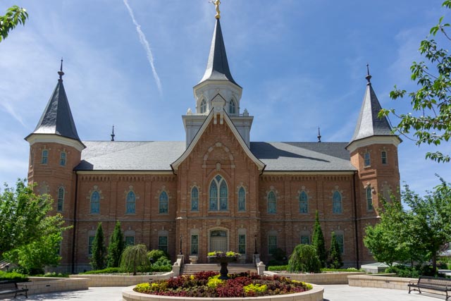 These were the original offices of Brigham Young Academy, founded in 1875 by Brigham Young, president of the Church of Jesus Christ of Latter Day Saints. It now houses the city library. The entire university was housed in the “square” that encompasses this building.