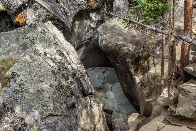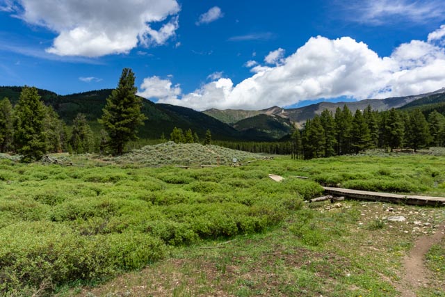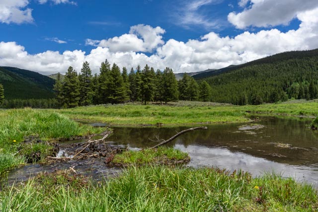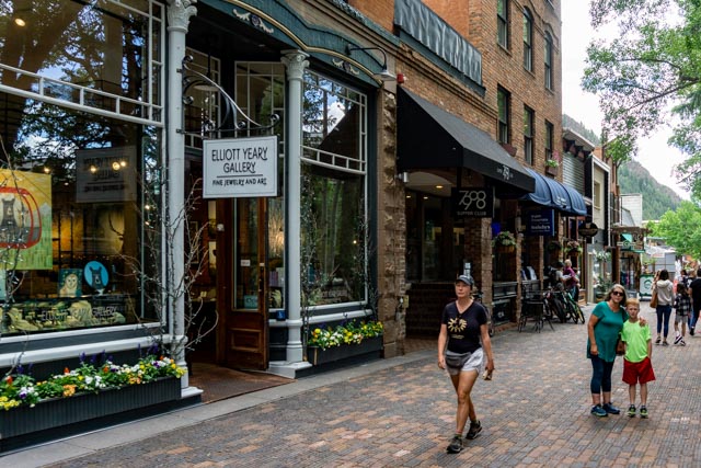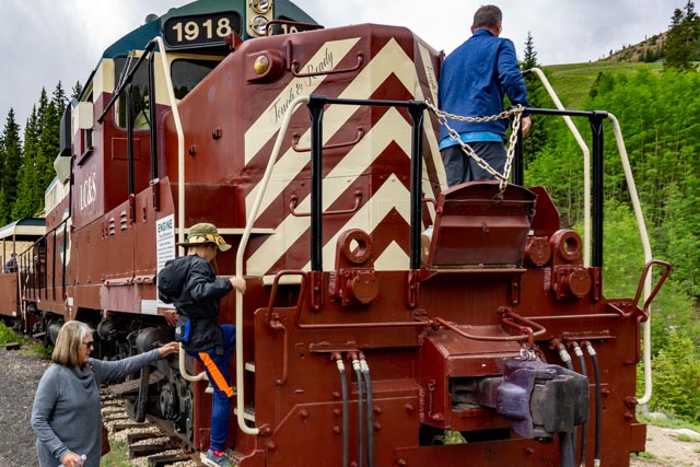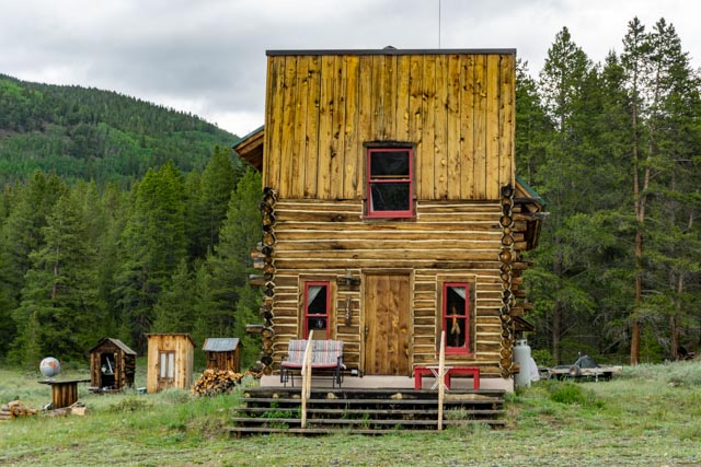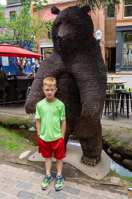 We took the Leadville, Colorado and Southern Railroad from Leadville to the Continental Divide and back, a trip lasting about 2-1/2 hours. We followed the old Denver, South Fork & Pacific roadbed and the Colorado & Southern roadbeds to reach the pass. Here we are going up the hill with the engine pushing us. The hills above us were damaged in a forest fire a couple of years ago.Here we are heading back down. This is the tightest turn on the trip and the train has to go very slow to keep on the tracks.You can see two of Colorado’s tallest mountain peaks in the range at the end of the valley, Mt. Massive and Mt. Elbert. We were almost 1,000 feet above the Arkansas River Valley.Jason and Cathy headed into the engine to take a look.After imparting his vast knowledge of the art of driving an engine (Jason does have years of experience with an electric train) they exit the engine assured the the engineer now has the fundamentals to continue to town.Cathy is just relieved to be out of the small cab. We rented a small Jeep to make the trip up and over Tin Cup Pass north to Cottonwood Pass, then back to Buena Vista. It was a nice 4×4 road and I could have done it in my truck but really wanted to see if there is any difference between the Jeep and the Ford.We stopped at the Continental Divide trail crossing. It rained a little in the lower elevations causing some muddy trail but as we go near the pass we ran into fresh snow.The snow was still in place but disappeared once the sun had a go at it.Cathy and Jason stopped on top of Tin Cup Pass, about 13 miles from the ghost town of Saint Elmo and 12,154 feet in elevation.Jason got ready to take a trip up the mountain but we were able to keep him near the Jeep.The road ended at Mirror Lake. I waited for some others to go ahead so we could find the trail. We actually drove a bit along the shore, fortunately it was not too deep. There were fly fishermen in waders that had to move to let us by. Evidently the lake doesn’t usually get this high.That’s the red hood of our rental Jeep.In the town of Tin Cup, we drove around for a bit of sightseeing then stopped at the only general store to get a “Tin Cup”. The cups they had looked Chinese so we picked up a glass whiskey 4 oz. cup, also probably from China also but it did not say.The town was very quaint and small, one store, one hotel and one campground. We drove to the cemetery and decided it was a nice spot for lunch. Cathy found the only headstone still standing way in the back of this area. I missed it on my first pass.The main part of the cemetery was across a couple of bridges but the surrounding meadows were beautiful.Somebody else was working on damming the creek . . . Cathy unpacked the lunch, Jason built his own dam in the creek, and I explored the immediate area. We were by ourselves!This was an interesting way of determining where the Catholics went . . . The surrounding mountains were 123 – 13,000 feet, giving us spectacular scenery in all directions.There were some pretty oldish buildings still standing and in use in Tin Cup.This is the residential district. We did see quite a few snow machines for winter transportation. When we returned to Buena Vista, I told the rental agency the jeep was a little “squirrely” so we kept the speed down. They did an inspections and found the front springs and shocks broken. They knew we did not do the damage and let it go. In the morning we headed up Independence Pass again with the intention of going all the way to Aspen, then looping back. Once over the pass, we saw these old ranch type buildingsAcross the road was an abandoned mine. There were mine remnants everywhere you looked.We made it to Aspen and it was not what we expected. It is very cosmopoliton with Rodeo Drive type stores. We drove out to find another way out of town (there wasn’t any) and happened by the airport. Dozens and dozens of private jets, with about 12 Gulfstreams in a row. We have never seen that many private jets lined up!We did walk the town and it was beautiful but crowded.Jason found this tin bear sculpture in one of the byways.We are not on Rodeo Drive or NYC! This is country . . . Once the rain started the people disappeared. Well, we can still get wet so we walked back to the truck.We stopped at a little park along the road on the way back and decided to take a walk in the woods. Jason is charging ahead and young’ns do. We headed back up the pass and found these ice caves, where snow is compressed into the depressions and lasts most of the year. This is the top part of the “cascades” along the trail.This is the bottom part of the “cascades” that we hiked to.Jason posed at the trailhead, he is ready to go back.