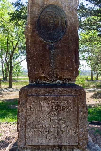 Once we set up camp in Montrose, alongside the Uncompahgre River, off Chipeta Road we headed to the Ute Indian Museum. The museum was recently remodeled and featured a lot of exhibits, a children’s area (which Jason really enjoyed) and set of short videos that featured elders speaking about history, culture and contemporary life of the Ute people.The museum sits on the grounds of Ouray and Chipeta’s home. Ouray, Chief of the Utes. The monument above is to commemorate both Chief Ouray and his wife Chipeta. Chief Ouray died on August 24, 1880 from untreated Bright’s disease while working to induce the Southern Utes to sign the Treaty of 1880 and to meet with commissioners from Washington regarding payment of the Utes’ money should the treaty be ratified. He was buried in a secret place along the Pine River. To this day it is not known conclusively where his remains are. It was estimated that at the time of Ouray’s death, there were over 1,000 Utes camped near him.Chipeta was referred to as “Queen of the Utes” and died on August 16, 1924 of chronic gastritis at the age of 81. She outlived her husband by 44 years.