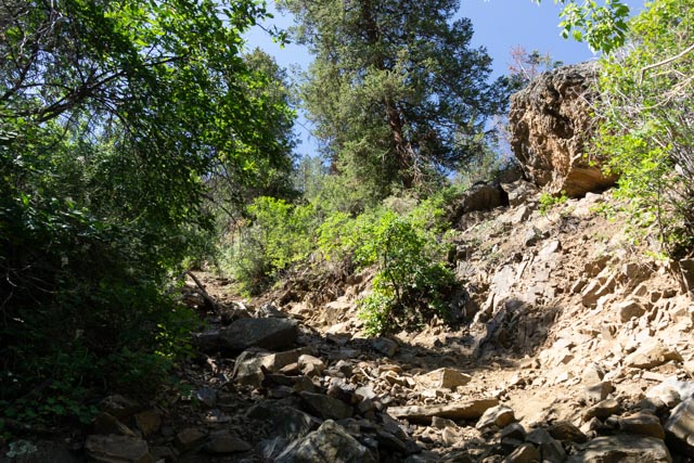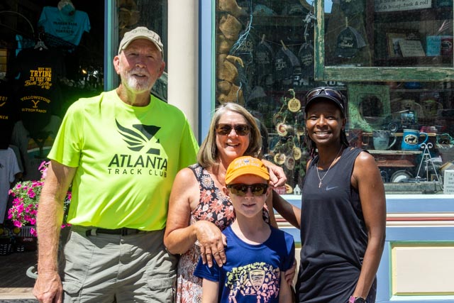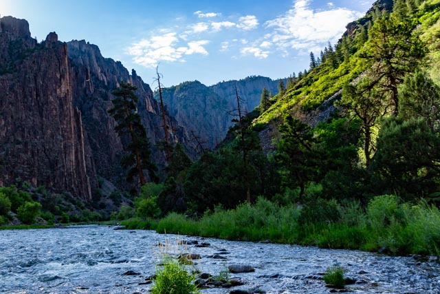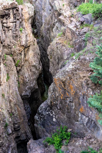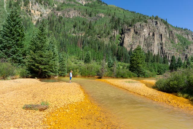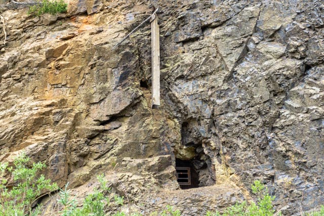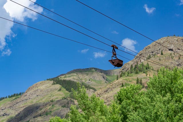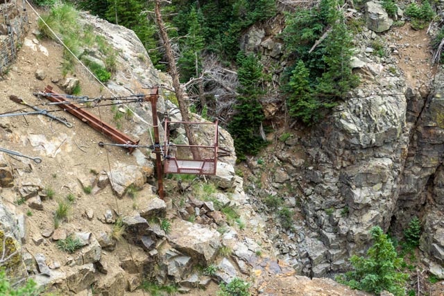 Chief Ouray’s alleged remains were moved to a reservation cemetery at Ignacio in 1925. There were no official attendance reports but over 350 cars filled with people were in the procession.The original spring from the Ouray home is still producing water. The spring is located in the concrete Tepee erected by the DAR in 1925. The water is directed to the small pond which is landscaped with native plants. (and a big frog)The Uncompahgre River flows by the Ute Museum and we are parked about a block or so downstream.This yellow river flows north to the Uncompahgre River just before Ouray. Mine tailings are coloring the stream and the water.This is another “Red Mountain” on the way to Silverton.Arrastra Gulch is where it all began. Gold was discovered across the Animas river and the Little Giant Mining Company was formed. To move the ore from the mines directly to the mill, a 10,100 foot tram line was built, the first ever to use steel towers. The mining companies pioneered new technologies in the Arrasta Gulch, setting new standards for the mining industry. Here some of the most complex aerial tram systems ever engineered were built – most in an era when industrial motorized machinery as we know it today did not exist. There we hard rock mines strewn all over the mountains. It is good that someone or group took the time to secure most of the mine entrances to avoid dangerous traps.This and the next photo are the remains of a mill on the Alpine Loop Scenic Byway (a fancy name for a 4×4 or OHV trail) near the townsite of Eureka..We were wondering what this hand trolly was for so I parked and walked around and down to discover it takes you across the Animas River, over a very deep gorge to some nice, but relatively inaccessible riverside property (or mining claims) that just needs a buyer. Believe me, I had no intentions of trying to go through that gate! None at all.It a good thing Cathy did not see this deteriorating roadbed. I sure would not want to be “hugging” the edge here!We drove through Silverton and and took a spin up Cunningham Gulch to find a picnic area. It was just a short hike to this waterfall. The clouds came in fast and it was sprinkling by the time we got back to the truck, then snowing between Silverton and Ouray on the “Million Dollar Highway”, billed as the most dangerous highway in the U.S. It had it all: it is steep, narrow, windy, has minimal guardrails and HUGH drop-offs, and today . . snow!I missed my first chance to go down into the Black Canyon so I waited for three hours the next day to make sure I would get one of the 14 available permits to make the climb. The one hour pre-hike safety talk evidently scared off almost half of the hikers as I only saw six people total for the group that went through safety with me. There is only one way down and one way out so I don’t think I missed anyone. I started at 6 AM to avoid the heat. I was the first to the bottom and spent my time by myself before climbing out.This trail doesn’t look too bad . . no wait, its only the trail to the climb.This was a neat, strategically place sign trailside just before we entered the wilderness.The trail topside looked pretty good. But this was still the Oak Flat Loop trail for flatlanders haha.Now the fun begins. Once the trail becomes a track, the scramble starts and the going got significantly steeper.Rocks, I hate rocks! Unfortunately, it only gets worse.This section is so steep they have installed about 240′ of chain so you can abseil (rappel) down. Unfortunately the camera does not capture the steepness.I am holding on with one hand and taking the photo with the other.This photo does not show the severe drop I am looking at. The rocks are all loose and slide down with you, though.Sometimes it gets hard to determine which way to go. We were told “as long as you are descending, you will be ok”.But be careful to look back to see what the “trail” looks like. You will want to use the same route going up that you took down. Getting lost going up is the biggest reason for the rescues.Yes, I made it down but my feet are killing me! It was an 1,800 foot vertical descent to the river, and now I have a 1,800 foot Class 3 climb out. UghI wish for a minute that I had brought my fishing rod, but it would have been broken before I reached the water. I can see why we were warned not to try to swim in this.The sun is rising so I have my 15 minutes of rest. Time to head back.I almost forgot to take a selfie to prove I made it. There is no one else here yet to take the photo.This formation was directly across the river from me. It would have been tempting to try to cross.I took many short breaks on the way up. You can see I am covered in dirt and the temperature is going to hit well over 100 degrees by the time I get out. I got bruised, bloody and dirty coming up. Made a good presentation for Cathy when I eventually arrived back at camp. My SatPhone did not work as the canyon walls were too steep for Satellite communication. I was told there would be absolutely no communication once you started on the wilderness track and they were right! I don’t remember all of this climbing on the way down; dang.One last look at the canyon from near the top. It was fun but I don’t think I will do that again.In the morning we went in to Ouray. I wanted to stop at a climbing shop to get details on the road into Mt. Sneffells which was going to be my first Class 3 scramble. There was still snow blocking the road so that was out but my climb out of the canyon yesterday was a Class 3. I guess I kinda nailed it! I was wearing the shirt in the photo and this young lady said hi! are you a member of the Atlanta track club? She turns out to be a former member, past winner of the Peachtree 10K, an was an Olympic Competitor in the 10,000M. She is now working at the Grand Canyon Health Center, treating injuries. It is a pretty small world and I am glad I was wearing the shirt!.Jason is pointing a p
