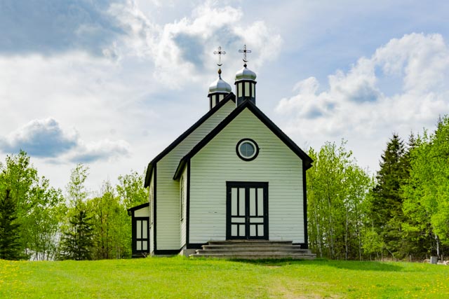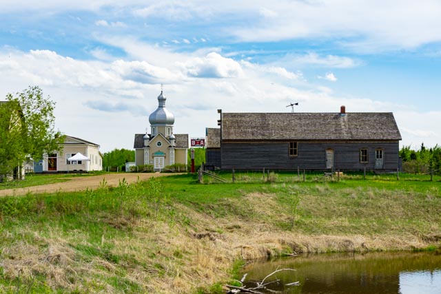 After lunch, we drove to the Ukrainian Cultural Heritage Village just east of town. This village contains 52 restored buildings that have been relocated from various locations within Alberta. There were electric “scooters” for rent (at a vey low rate) and we did see one elderly couple enjoying themselves with the scooters probably more that the buildings. They were still going strong when we left!
