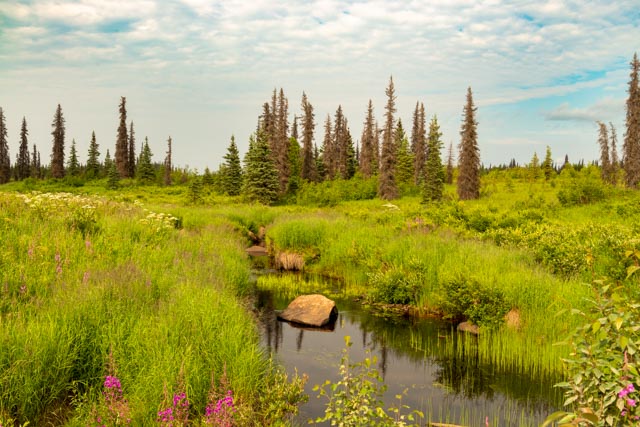 We made the drive into Talkeetna from Denali. We got a surprise at the RV Park. It seems that I made the reservations for JUNE instead of July! They were booked up but we are staying the two days in their overflow area (parking lot). Oh well. We are still enjoying the stay. We went to dinner last night in “downtown” but by then most of the stores were closed. We will be going back this morning.We decided to make the drive out to Petersville Road, leading west out of Trapper Creek. Originally built as a mining road, it is a popular destination for 4-wheelers and snowmobiles.The scenery along the road was typical Alaska, beautiful, strewn with beaver ponds, fireweed and taiga.We crossed over one of the larger creeks on a bridge.The open fields of grasses and ponds continued to amaze me. This is a vast territory.Here is one of the large of the ponds. This one was stocked by Alaska Fish and Game. I should have brought my rod!This historic roadhouse is located at the fork in the road, at mile 19. We drove to the right since it was for high-clearance 4-wheel drive vehicles. After reaching the Petersville recreation and mining area we turned back and took the left fork.Quickly (.2 mile) we came to this bridge, I started to go over it but Cathy noticed it was for ATVs only. I parked and walked it instead. This was the end of the road for most vehicles.In the morning we went to the Flying Squirrel bakery. We had tried this location on two previous trips and it had been closed. It was open so we just beat the crowd and had a breakfast of pastries.Cathy and I both had, amongst other treats, these wonderful potato and mozzerella buns. Cathy walked out with the rest of the stuff we ordered as these were very filling. We now have a lunch and maybe a dinner! Oops, we stopped at Denali Brewery and Distillery for lunch. They make a single barrel malt whiskey but had none available for retail (a very small batch).After breakfast and lunch we took a quick drive east to Trapper Creek to visit the Three Bears grocery store. After purchasing the necessary Monsters, we headed west on the Parks Highway to Montana Creek. There was bridge reconstruction going on so first we went to see the areas where Jason and I fished for salmon on a previous trip, then went across the highway to see the commercial campground. We did not notice a lot of difference between the commercial and the State Campground, so we decided that we made a good decision on the previous trip. We stopped at the library in Talkeetna (a very good library) and Cathy picked up a book by a Georgia author. After the library we headed into town. It was drizzling, keeping the crowds down, and we walked around the shops. This Airstream was polished to a great shine and repurposed into a restaurant.We walked to the Forest Service offices to see the Denali statistics. All Denali climbers must check in and get permits here before attempting the mountain. All of the rescue teams work out of this facility. Interesting to note that 70% of the attempts on Denali were summits while only 5 climbers attempted nearby Foraker with 0 summits. Foraker is about 3,000 feet lower than Denali but must be a tough climb! Also . . NO deaths this year on Denali.While in Talkeetna, we had to make the mandatory visit to the starting point of most climbing expeditions, this general store and pub.We continued to walk the downtown, watching two Alaska Railroad passenger trains pass through, and wound up at Aurora Dora. Dora is from Brazil and has taken remarkable photographs of the aurora, all within about 100 miles of Talkeetna. She offers photographing education trips, and knows the exact date and time of every photograph in her studio, of which there are hundreds. I finally broke down and purchased one of her photos. In the morning we are heading to Anchorage and have both Costco and Tidal Wave Books in our sights.