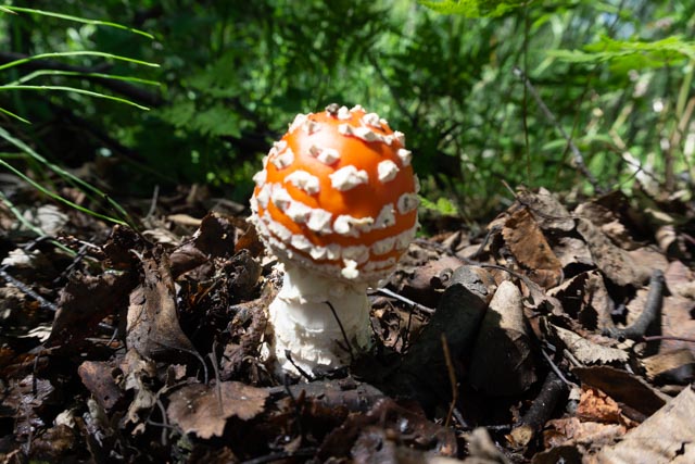 This is one of the many wild mushrooms of different colors and shapes found alongside the trail.