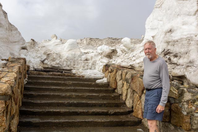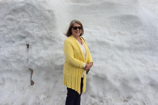 Cathy showing the depth of snow near the Fairview Curve at the Alpine Visiter Center. This is where the Old Fall River Road ends up. I guess it really was “snowed in”.