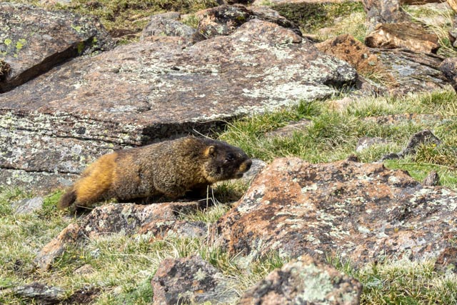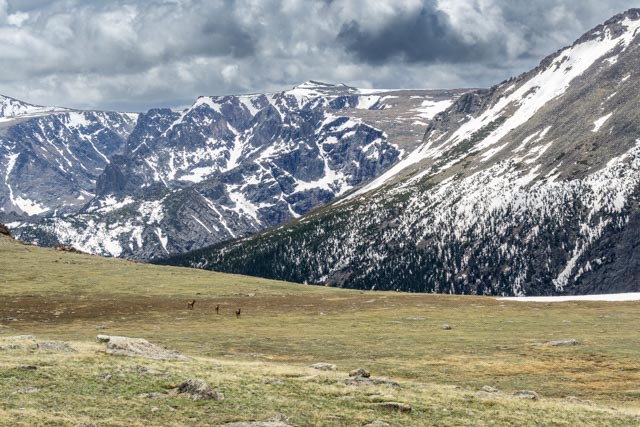 We spotted this guy on our way to the Old Fall River Road which was closed due to heavy snow. He walked around our truck and I was immediately “lit up” by a park ranger. Apparently I got too close to the moose, and my argument that the moose approached me did not seem to hold water. Eventually he let me go with just a warning.