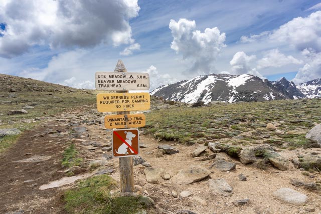 This sign is in about a block from the trailhead. Most people make a quick detour to climb a rock overlook of the valley below and never actually make it this far. I had tentatively planned on hiking to Beaver Meadows on this trip but was not prepared for the weather.
