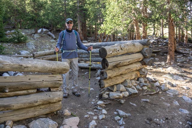 This is the remains of a log cabin, located within a mile of the fork. There were several people camped here but they must have been out climbing as there was no one home.