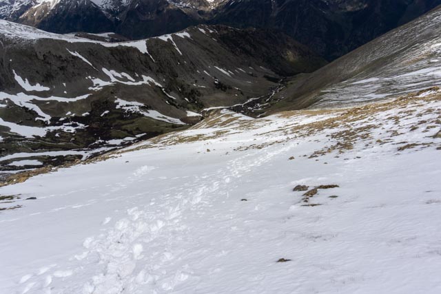Without a trail to follow, sometimes you just had to make your own. I chose this snowfield because it was not churned up from multiple hikers.