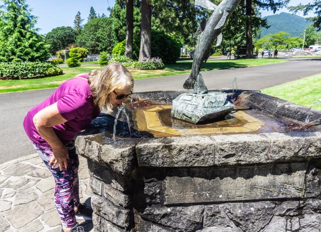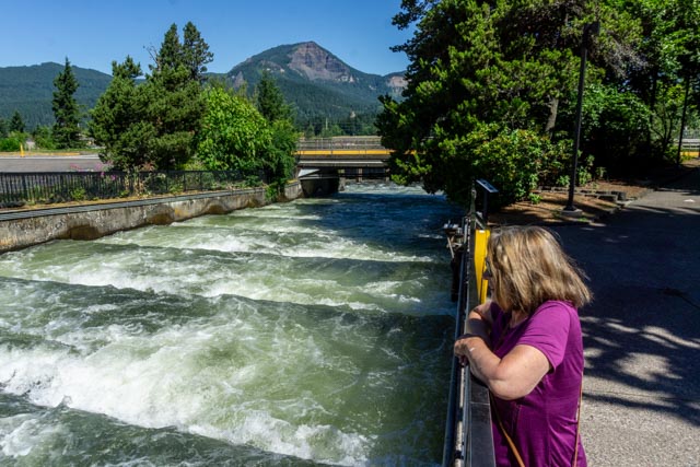 We stopped at the Bonneville Dam on the Columbia River, 40 miles east of Portland to watch the salmon run. The Chinook, Coho and Sockeye salmon (and other species, including trout, shad and Lamprey eels) to climb more than 60 feet to continue their run to the spawning grounds. It was interesting (and fun to watch) the way they jump the steps on the way up. Construction started in 1933 on first powerhouse and continued in phases until 1943. A second powerhouse was added during the period of 1972-1986.
