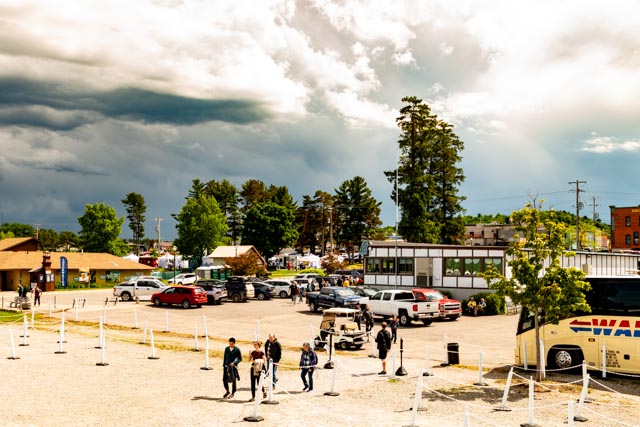 We decided to get tickets for the Pictured Rocks National Seashore tour boat, we got top deck seats and watched the late arrivals. The weather system you can see in the background moved through earlier, resulting in a mostly sunny trip. Cruises were cancelled due to rough water the previous day and the next day so we picked the right day to venture out!