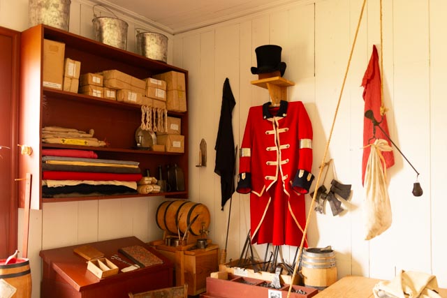 Above is the guard house or lookout tower. This was mainly for the safety of the Native Americans and voyageurs. Without them the operation could not work. The natives brought in thousands of pelts yearly to be traded for blankets, tinware and food.