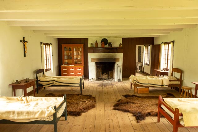 This was the quarters for the upper-class traders. Notice the coats made from blankets. The blankets look very similar to Hudson’s Bay blankets and upon inquiry, I found out that they were made by the same manufacturer. These were listed in the catalogue as simply HB Blankets as there was a great rivalry between the two companies.