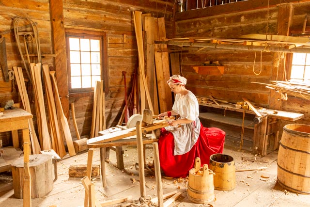 This young lady was using a draw knife to make kindling out of cedar to start fire in the fireplaces. She told us that this was the first time she used a draw knife and it really wasn’t very difficult.