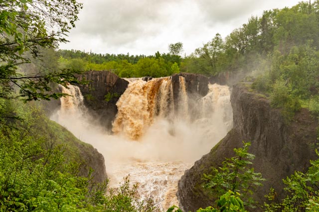 This waterfall is a short hike from the border crossing station, on the American side of the Pigeon River. At 120 feet, High Falls is the tallest waterfall in Minnesota. I tried to get closer but due to the heavy rains, the misting was immense. I had to go downstream to get this photo without soaking my camera.