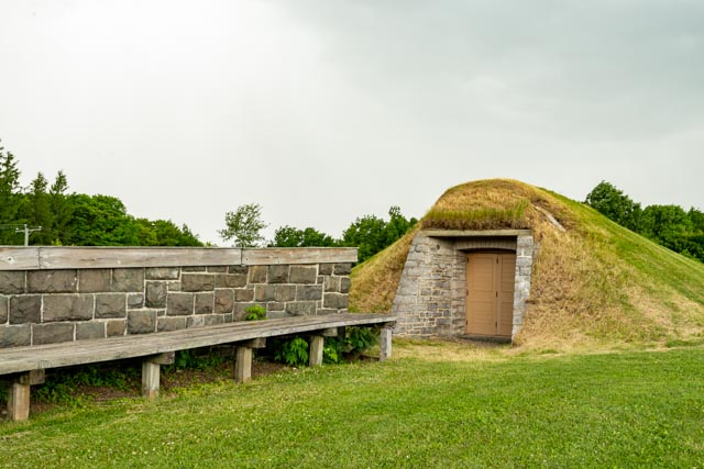 Walking on the rim of the main fort, we met a young man from Labrador. After talking about his home (unreachable by roads) we discussed Canada’s role in wars in the past. Then we noticed the darkening of the skies. He assured us that it would pass and move to the right of us, but Cathy and I headed for the truck and just barely made it before the sky broke loose. He admitted he was wrong and headed for cover as well.
