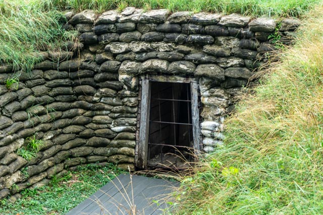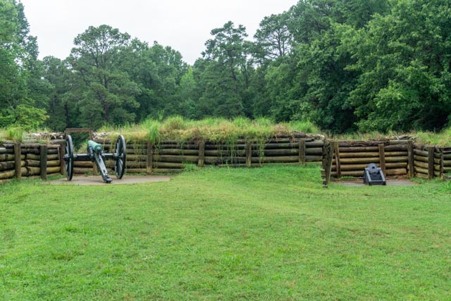 Outside the battery, if the cannon, mortar and gunshots don’t stop you, the battery defenses included pickets surrounding a moat (of sort) backed by a log and earthen wall backed by rifle-carrying soldiers will.