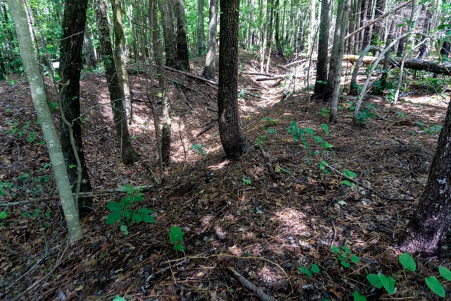 The Confederates, sensing that the Union might be tunneling under them created two “listening galleries” to detect underground activity. As you can see in the background, they missed the Union tunnel by at least fifty feet. The listening galleries have collapsed over the years, creating these depressions.