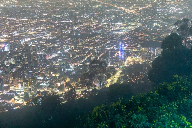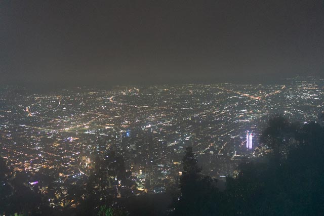 The exterior of the Monserrate Sanctuary was decorated for the holidays. The low clouds are starting to roll in (remember we are over 10,000 feet up) so before entering the church, I took a side trip down the hill to capture the photos below of Bogota.