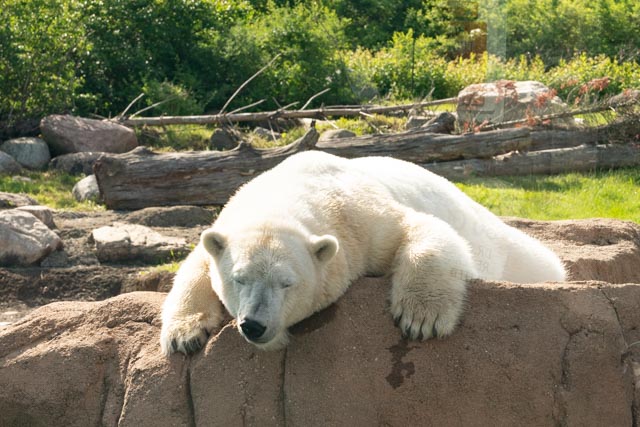 This lion climbed up on the rock and went to sleep. The rock, being in the direct sunlight, was pretty warm. All of the animals we saw have very large enclosures, giving them plenty of room to roam.