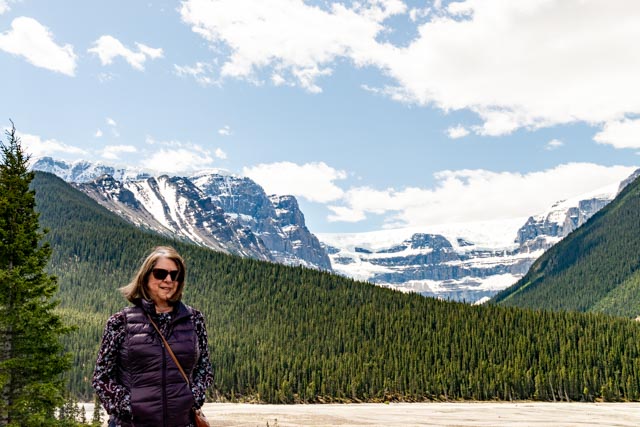 Cathy posed at a viewpoint on the Icefields Parkway