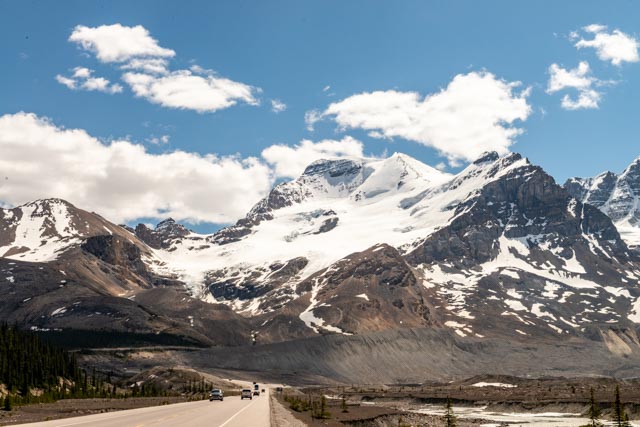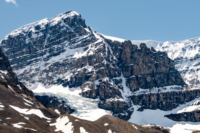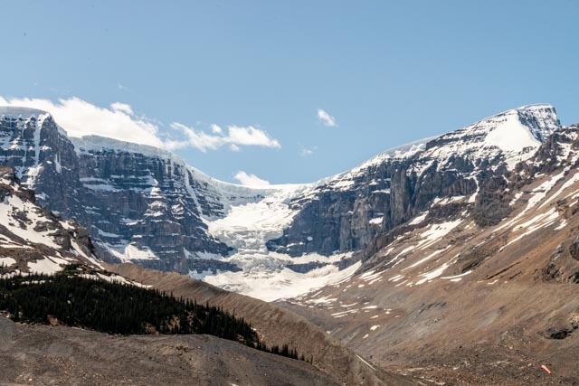 This is the Dome Glacier as seen from the terminal moraine the Athabasca Glacier. There is a pretty large icefield near the terminus of this glacier.