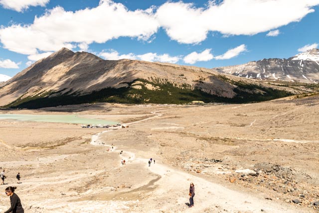 This is the trail to the Athabasca Glacier, I made it to the glacier, but Cathy (who is writing this caption) opted to wait with the “old folk”.