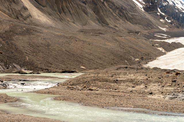 This is the headwater of the Athabasca River. You can see the toe of the glacier in the upper right in this picture.
