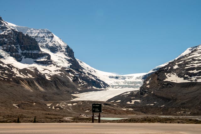 A photo of the Athabasca glacier as seen from the visitors center.