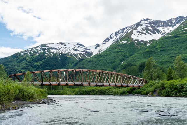 On the return to the train, we took a detour to get a shot of one of the original wooden bridges, downstream from the glacier over the Placer River