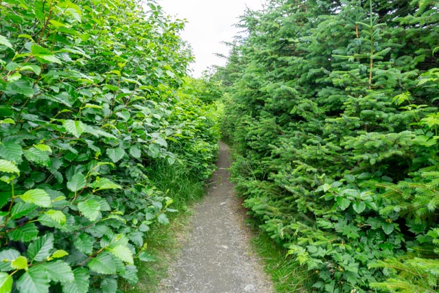 Once I reentered treeline the view disappeared but the trees and the moss and the ferns made up for it. Some of trees were larger than three feet in diameter.