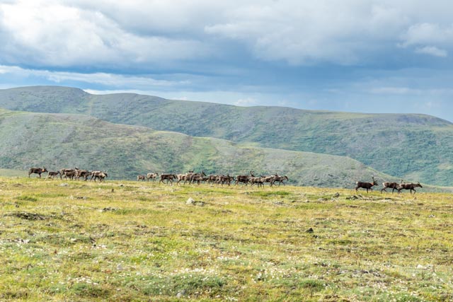 There were dozens. No, many dozens, no, hundreds of Caribou running before us. We did not expect to see them in these numbers!