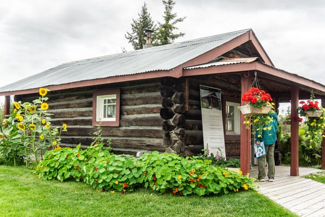 The small log cabin shown above is located at 105 Dunkel Street, just to the west of the visitors center. It is a unique part of the downtown Fairbanks cultural landscape, being one of the oldest structures in the area that is still in its original location. When the cabin (now known as the Gould cabin) was constructed in about 1910, Dunkel Street was on the edge of Fairbanks, just upstream from the riverfront business district. Photographs of early Fairbanks show a sawmill (gone by 1910) about where the visitors center is now, and at the river’s edge end of Wendell Street, just east of Dunkel Street, there used to be a ferry to the small settlement of Graehl across the river, and to the mines in the hills beyond.