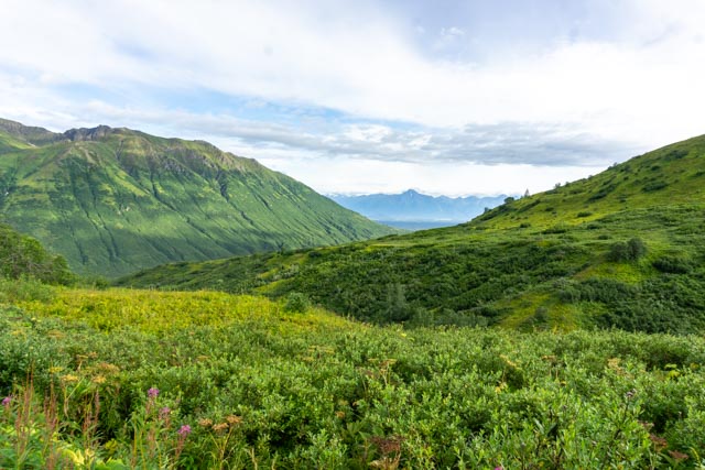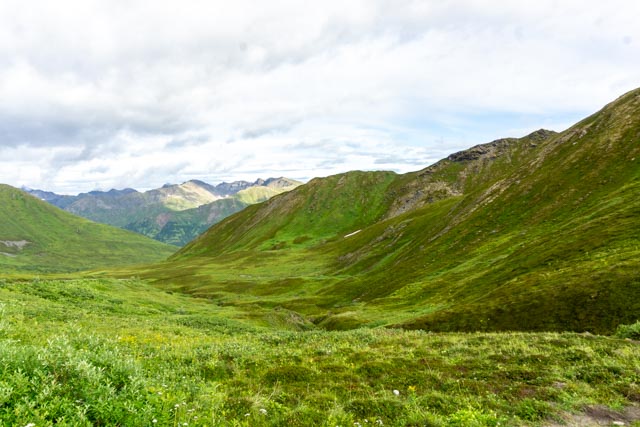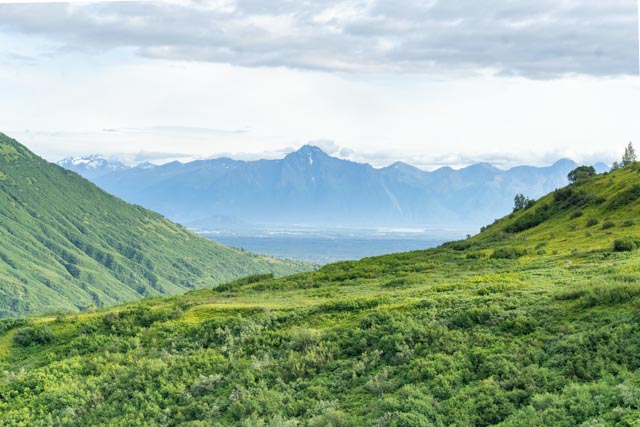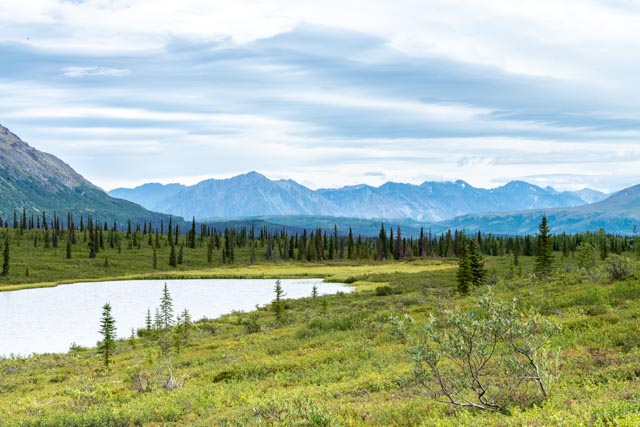 After spending a week at Fairbanks, we moved south to the town of Palmer. The sun was attempting to come out, so I pulled over on a wide spot on the Parks Highway, somewhere after Cantwell and walked down the hillside to try for a shot. As I stood there, I realized I was standing on a hill full of blueberries, in grizzly territory no less. I quickly took a couple of photos and high-tailed it back to the motorhome.