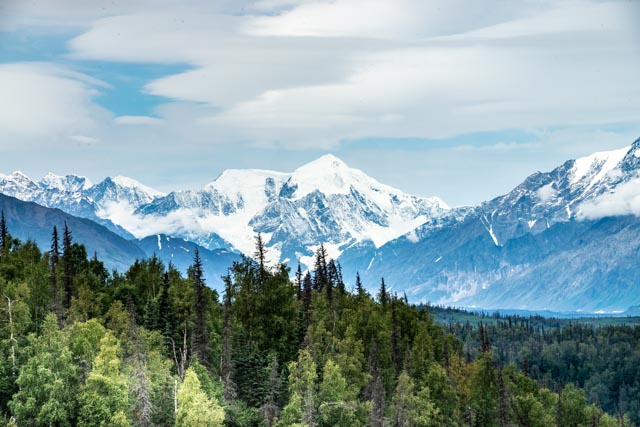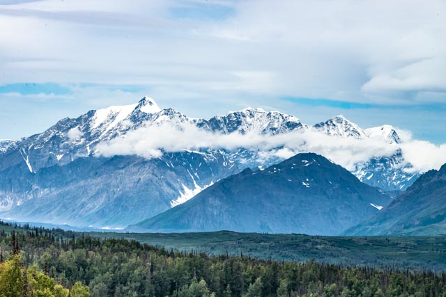 Heading south on the Richardson Highway, we had view after view of the Wrangell Mountains in the Wrangell-St. Elias National Park.