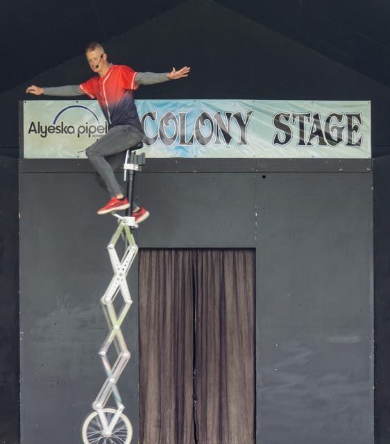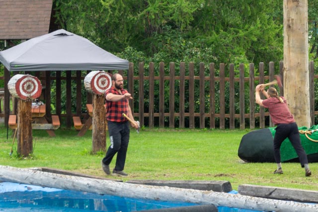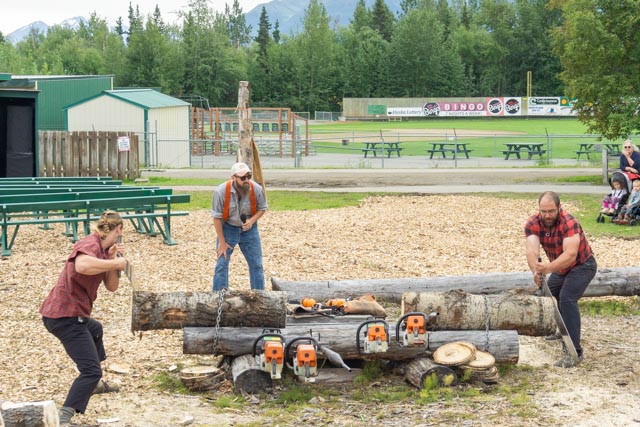 After the gardens, we headed to the lumberjack event. The participants were all Alaskan and the big guy throwing the axe had just become the World Champion Woodsman at the championships in Europe. This is always an entertaining venue. The tree climbing was a measly 30 feet, they climbed 75 feet during the championships.