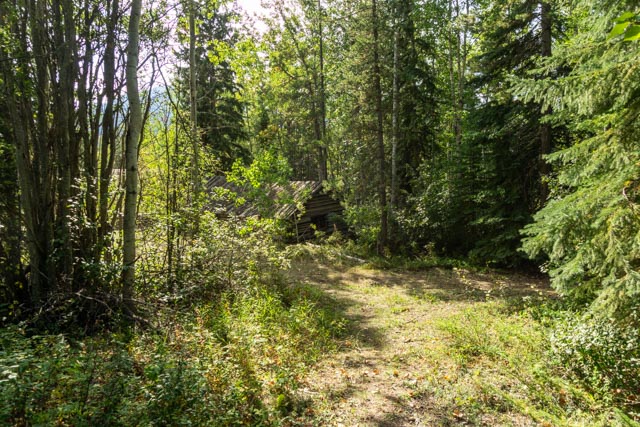 I saw this path through the woods upon leaving the dam area. Parking, I walked down into the bush and found an abandoned cabin and moose bones, apparently subsistence hunting.